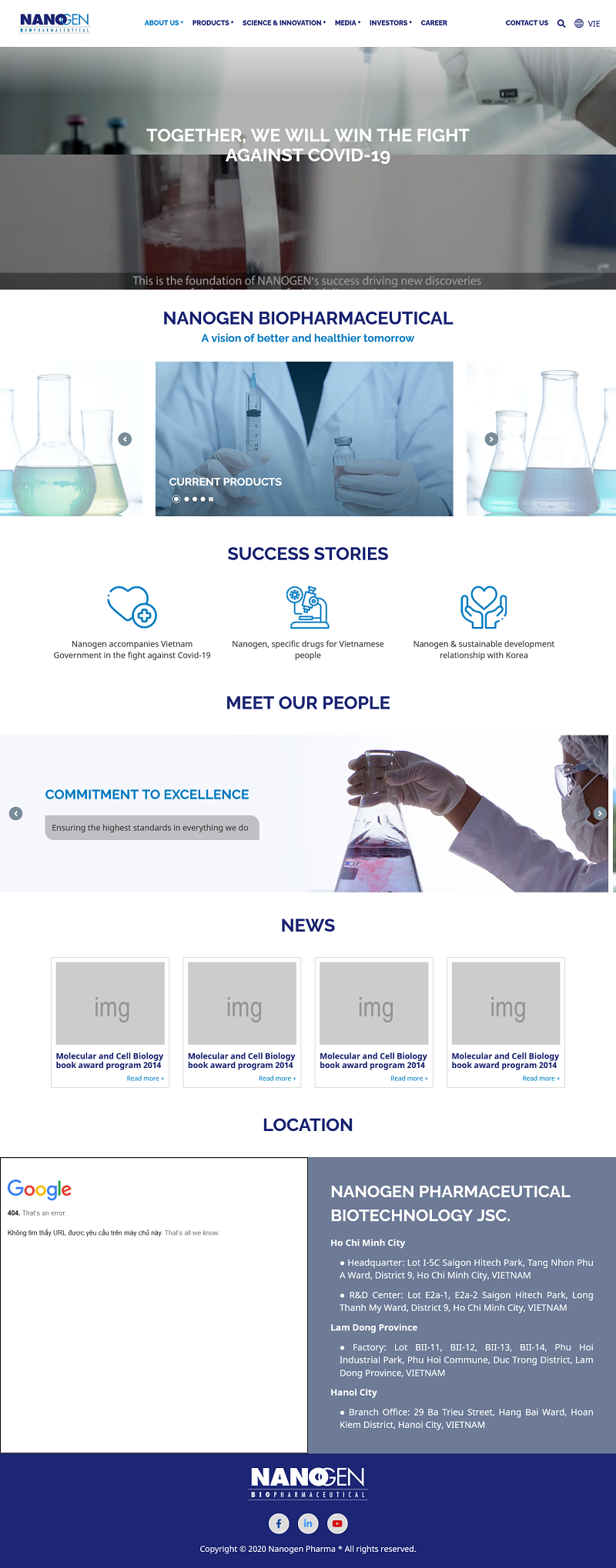 Nhằm hỗ trợ tối đa cho công việc của mình, NANOGEN đã tìm đến chúng tôi - công ty thiết kế website 123CORP để có được cho mình trang web hỗ trợ tốt nhất. Ngoài những tính năng cơ bản như cung cấp thông tin doanh nghiệp, sản phẩm nghiên cứu, tin tức liên quan thì một trong những tính năng quan trong của website này đó chính là cho người truy cập đăng ký tiêm thử vaccin covid19. Bằng việc sử dụng form đăng ký đơn gian, giúp người truy cập dễ dàng trong việc đăng ký. Website đa ngôn ngữ bao gồm tiếng Anh và tiếng Việt.