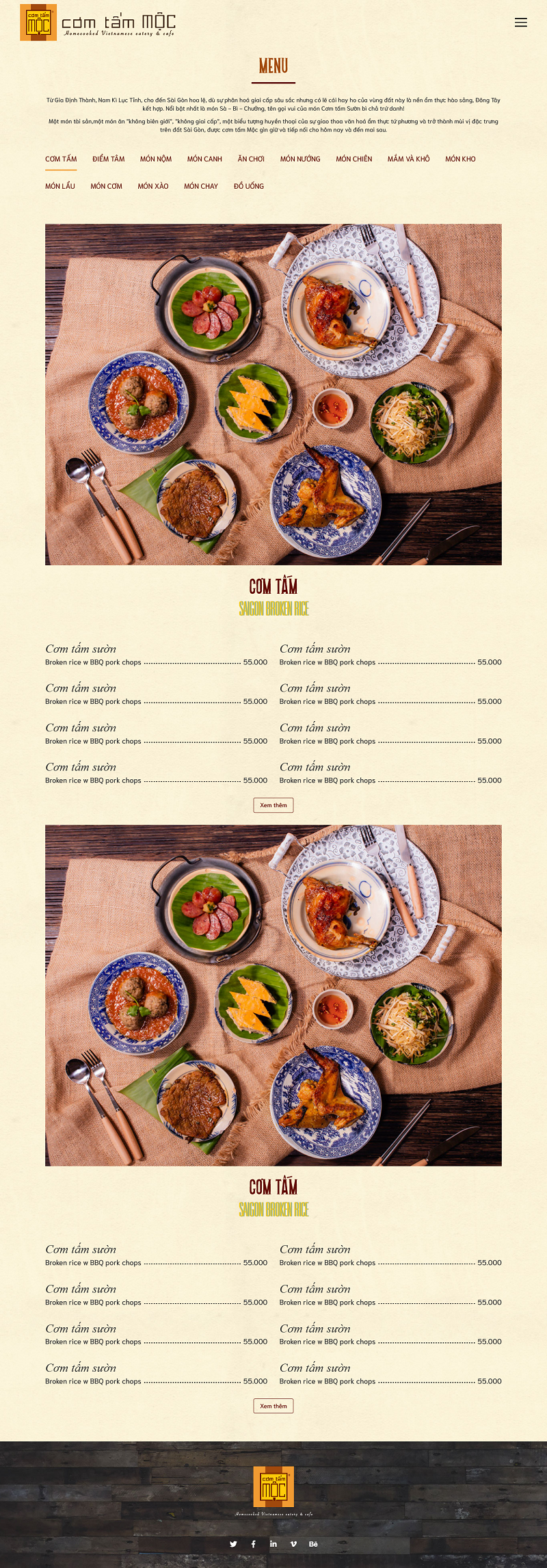 Dự án thiết kế website cơm tấm Mộc vẫn đảm bảo truyền tải đầy đủ nội dung và thông tin chi tiết trên website, nhưng bạn vẫn thấy bố cục từng trang web được thiết kế đơn giản, không là rối mắc. Tỷ lệ khoảng trắng và nội dung trên trang làm thỏa mắt nhìn của người truy cập, nhờ vậy quá trình truyền tải thông tin hiệu quả hơn.