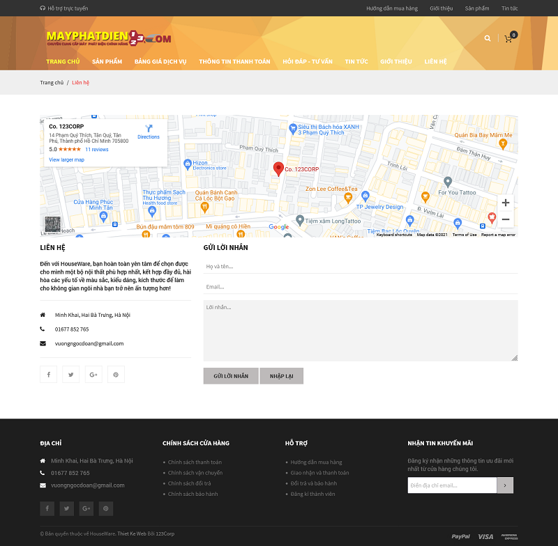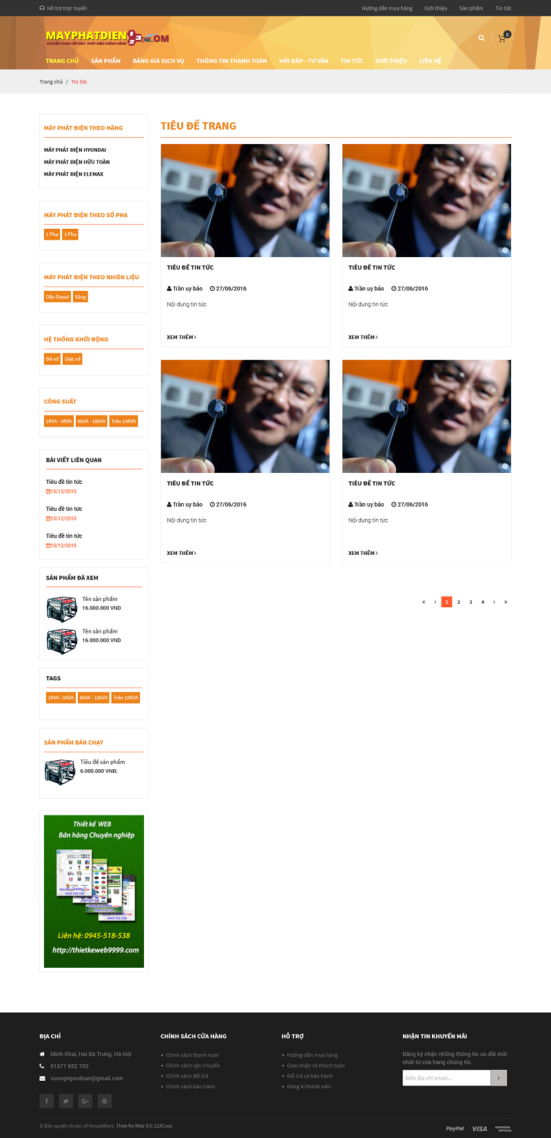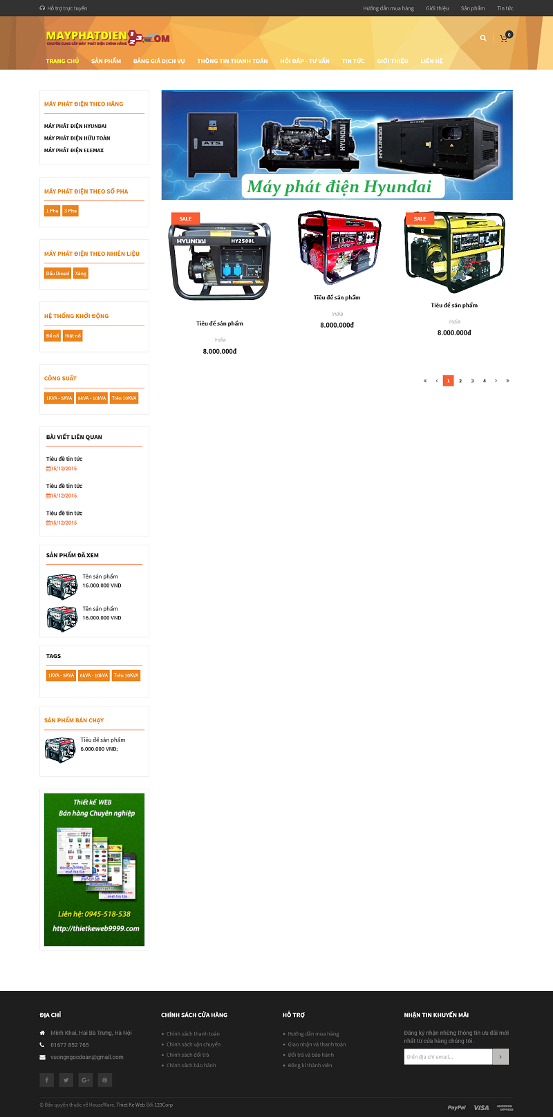 Mẫu Website bán hàng siêu thị máy phát điện sở hữu thiết kế hiện đại và bắt mắt, bố cục tuy đơn giản nhưng đảm bảo ứng dụng các công nghệ mới nhất, hệ quản trị đơn giản, dễ dàng đối với hầu hết người dùng. Mẫu web bán hàng siêu thị máy phát điện này là mẫu website bán hàng lĩnh vực điện máy code tay, chuẩn SEO trên từng dòng code giúp khách hàng nhanh chóng đưa web đạt được thứ hạng cao trên các công cụ tìm kiếm hiện hành. Mẫu website điện máy này đáp ứng hầu hết các nhu cầu cần thiết về 1 website bán hàng chuyên nghiệp như: