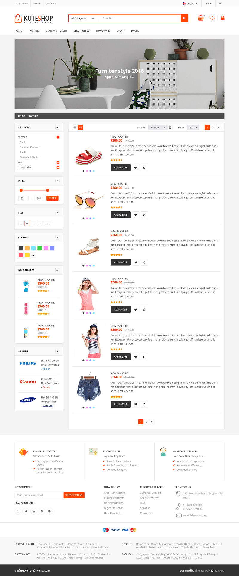 Mẫu website bán hàng thời trang kuteshop là mẫu website hiện đại và cực kỳ sang trọng với thiết kế tone màu chủ đạo là màu trắng làm nên một website đẹp và sang trọng. Mẫu website này phù hợp với những cửa hàng và shop thời trang, giúp họ có được một môi trường kinh doanh trên internet hữu hiệu.