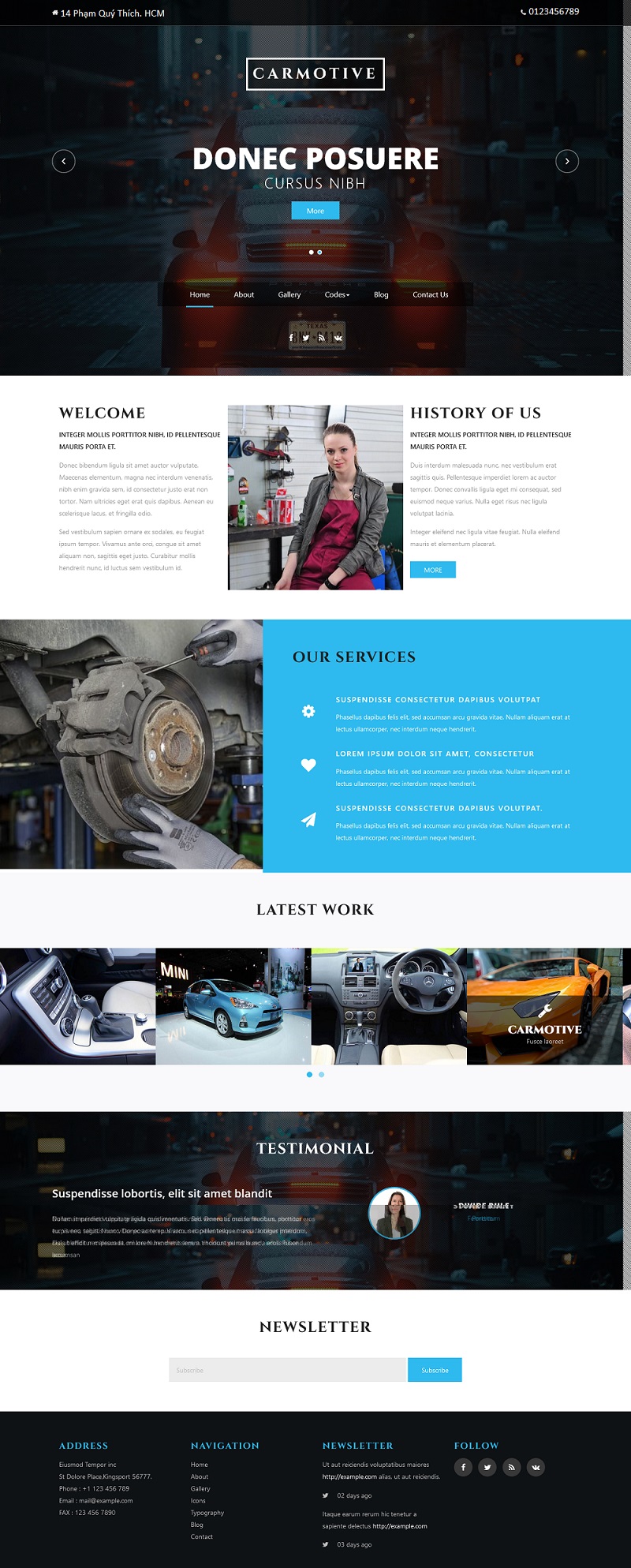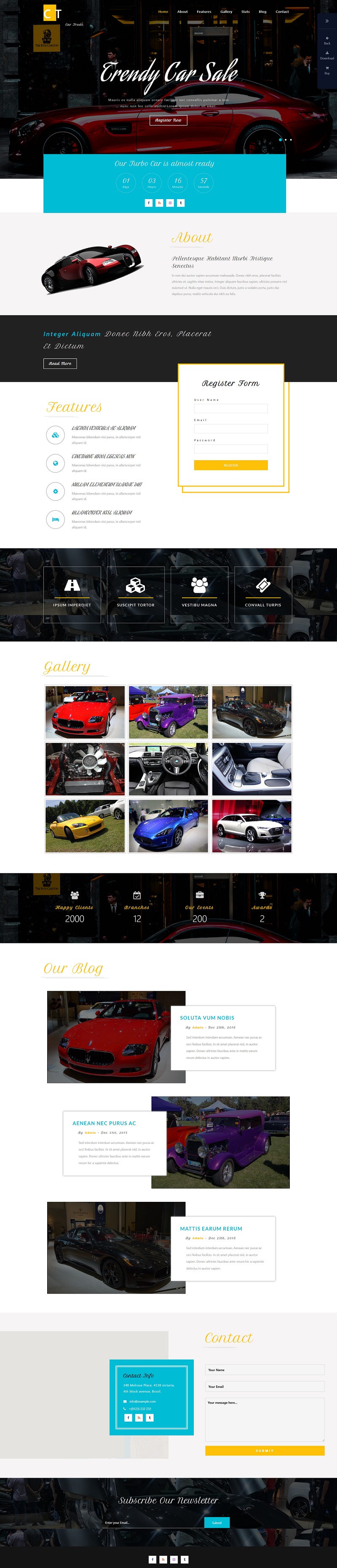 Đây là một mẫu website theo chủ đề ô tô, một lựa chọn tốt nhất cho tất cả các doanh nghiệp kinh doanh ô tô giúp họ mở rộng hoạt động kinh doanh thông qua trực tuyến và tăng lợi nhuận bằng cách sử dụng mẫu website được thiết kế trang nhã và thông minh này. Mẫu được thiết kế thông minh này cũng là sự lựa chọn hoàn hảo cho tất cả các trang web của bạn như đại lý ô tô, trang web ô tô, doanh nghiệp hoặc bất kỳ lĩnh vực về ô to khác như: Cho thuê ô tô, Chăm sóc ô tô, Bảo dưỡng, Chẩn đoán xe, ... Mẫu được thiết kế sáng tạo này có các tính năng tuyệt vời như thanh trượt văn bản biểu ngữ, đồng hồ đếm ngược, hiệu ứng di chuột bắt mắt, biểu mẫu đăng ký thủ công đẹp mắt, hiệu ứng hộp đèn thư viện, số tiến, hiệu ứng thị sai đầy mê hoặc và phong cách thiết kế đẹp mắt, sang trọng trong từng chi tiết. Mẫu này là mẫu trình duyệt chéo đáp ứng 100%, tương thích trên mọi thiết bị, hiển thị trên mọi kích thước màn hình. Nó hoàn toàn được xây dựng trong khuôn khổ Bootstrap, HTML5, CSS3 và JQuery.