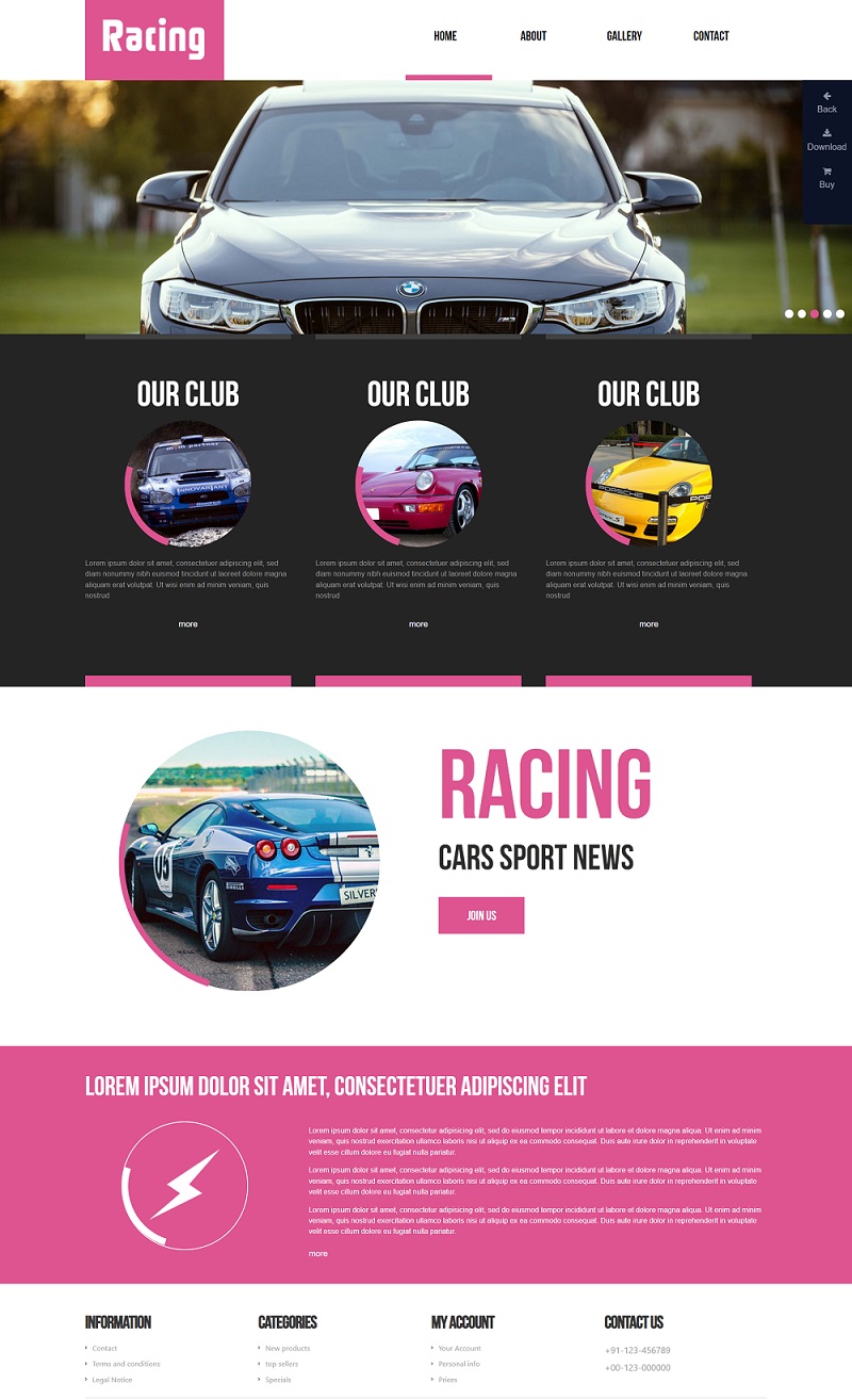 Mẫu website Racing là một mẫu web được sử dụng để bắt đầu một trang web cho Phòng trưng bày ô tô, phòng trưng bày phụ tùng và phụ kiện ô tô, điểm dịch vụ ô tô, điểm chăm sóc ô tô hoặc những nơi khác. Chúng tôi đang sử dụng thanh trượt jquery cho các Mẫu web và Di động. Mẫu này hỗ trợ tất cả các trình duyệt, Điện thoại di động.